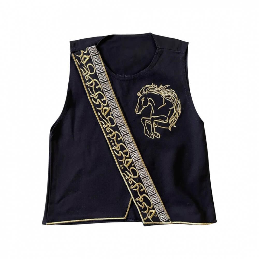 سديري ولادي لون أسود مطرز بتفاصيل ذهبية فاخرة، مصمم خصيصا لمنح طفلك مظهرا ملكيا في مناسبات العيد. مصنوع من خامات عالية الجودة مع تطريز دقيق، ليكون تحفة فنية تليق بمناسباتك الخاصة.